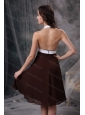 Home >  Special Occasion Dresses >  Dama Dresses for Quinceanera > Halter Brown Short Chiffon Dama Dress Quinceanera