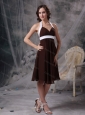 Halter Brown Short Chiffon Dama Dress Quinceanera