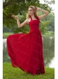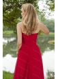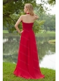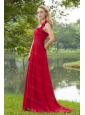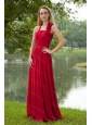 Are you looking for a stunning dress for outing? This must be the one you are longing for. Fashionable halter-top neck with floral design accented on one shoulder which creates a sense of romance. Pleated bodice with ruched waistline gives a perfect look. Soft chiffon skirt make the dress flirty. A sweep train is employed. It moves beautifully when you move.