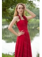 Halter Chiffon Ruch Brush Train Long Dama Dress
