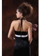 Simple but gorgeous this black bridesmaid dress is! The fitted bodice is adorned with a halter-top neckline. The white band adorns your curve. The skirt in stunning fabric flows freely to the floor to contures your slim figure. A zipper up back completes this wonderful design.In fact,the simple ones will leave long last impression in contrast and you will be the shiny star in any occasion you attend. Silhouette: Column / Sheath