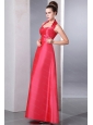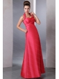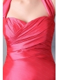 Halter Coral Red Column Ankle-length Taffeta Dama Dress