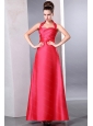 Halter  Coral Red Column Ankle-length Taffeta Dama Dress