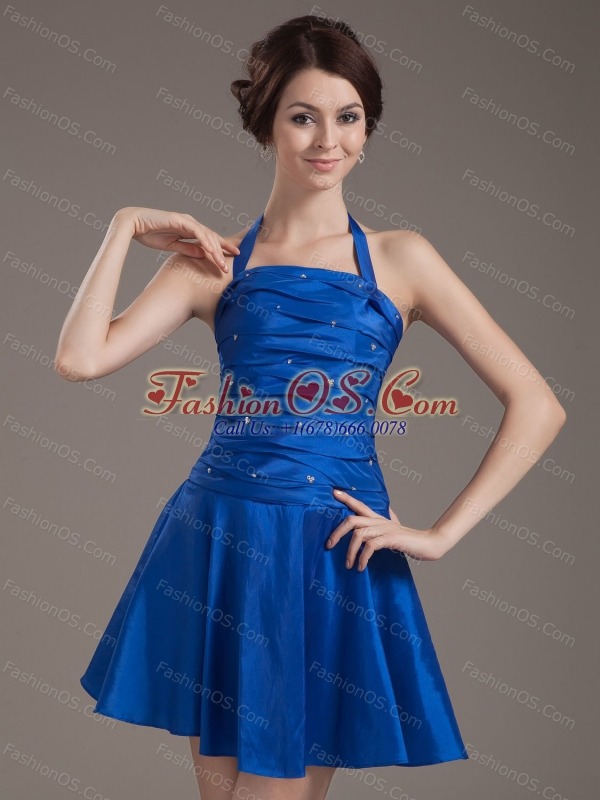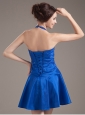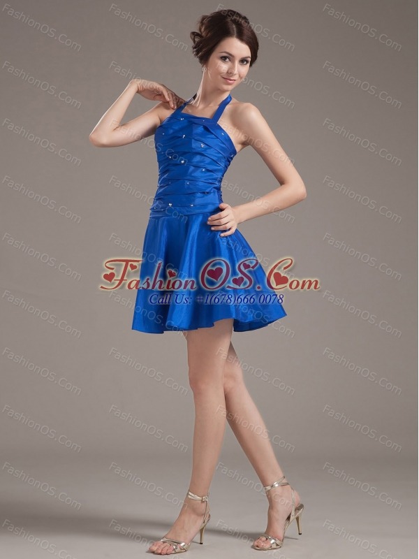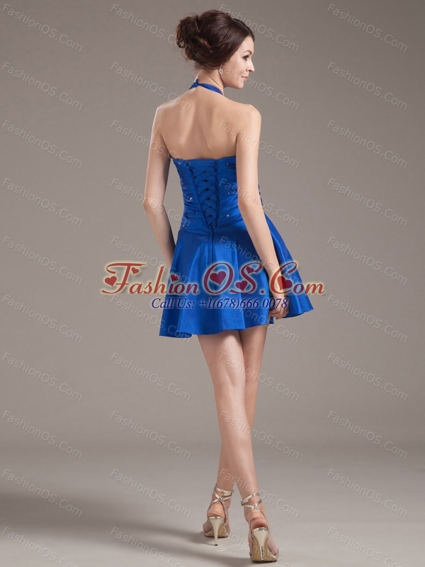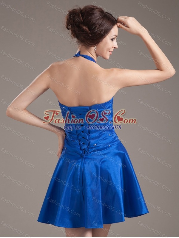 Flirt and amazing! This lovely short dress features a halter neckline with the bodice embellished with gorgeous ruchings lights up the design and flatter your figure when wear it. The floppy mini-length skirt completes the look. The lace up back guarantees easy off and on and secure the dress in place. Show off your loveliness and sexy figures with this one!