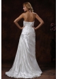 Halter Neckline Ivory Wedding Dress With Brus Train Satin Ruch Decorate