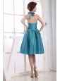 Halter Neckline Teal Bowknot Knee-length Bridesmaid Dress