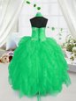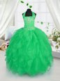 Halter Top Apple Green Lace Up Kids Formal Wear Appliques and Ruffles Sleeveless Floor Length