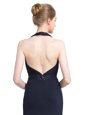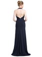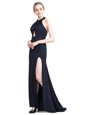 Halter Top Backless Elastic Woven Satin Sleeveless With Train Prom Evening Gown Brush Train and Beading