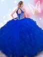 Halter Top Beading Quince Ball Gowns Royal Blue Lace Up Sleeveless