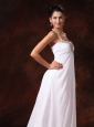 Do you wnat to be the spotlight on your wedding ceremony? If so, that pure dress will definitely help you stand out. The skirt features a ruched bodice which can conture your perfect figure, while the halter top neckline is encrusted by the beadings and crystals all over as well as the bust, which is alsolutely gorgeous. The skirt flows freely to the floor and the brush train gives a touch of romance on the dress. The lace up back finishes the look.