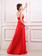 Home >  Prom Dresses >  Modest Prom Dresses > Halter Top Floor Length Coral Red Evening Dress Chiffon Sleeveless Beading