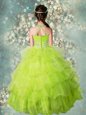 Home >  Special Occasion Dresses >  New Style Little Girl Pageant Dresses > Halter Top Floor Length Zipper Child Pageant Dress Yellow Green and In for Party and Wedding Party with Beading and Ruffled Layers