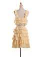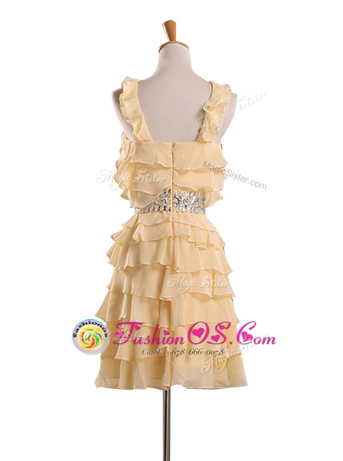 Home >  Special Occasion Dresses >  Cocktail Dresses > Halter Top Gold Sleeveless Chiffon Zipper Cocktail Dresses for Party