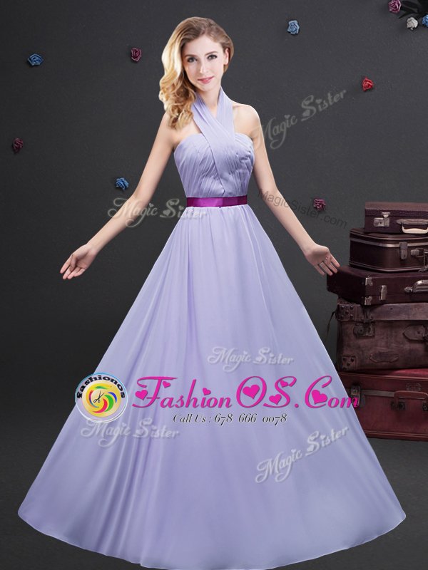 Halter Top Lavender Sleeveless Belt Floor Length Quinceanera Dama Dress