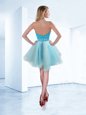 Home >  Prom Dresses >  Elegant Prom Dresses > Halter Top Light Blue Organza Zipper Dress for Prom Sleeveless Knee Length Beading