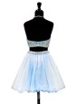 Halter Top Light Blue Sleeveless Mini Length Beading Zipper Dress for Prom