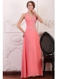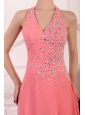 Home >  Prom Dresses >  Fashionable Prom Dresses > Halter Top Neck Chiffon Empire Beaded Decorate Full Length Prom Dress
