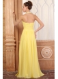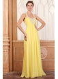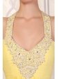 Halter Top Neck Empire Chiffon Yellow Prom Dress with Beading