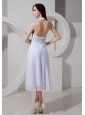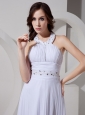 Halter Top Neckline Beaded Decorate Waist Tea-length White 2013 Chic Prom Gowns