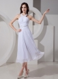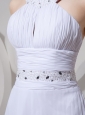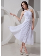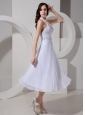 Home >  Wedding Dresses >  Affordable Wedding Dresses > Halter Top Neckline Beaded Decorate Waist Tea-length White 2013 Chic Prom Gowns