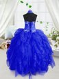 Home >  Special Occasion Dresses >  Little Girl Pageant Dresses > Halter Top Organza Sleeveless Floor Length Little Girls Pageant Gowns and Appliques and Ruffles