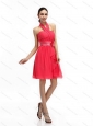 Halter Top Prom Dresses with Ruching and Hand Made Flowers