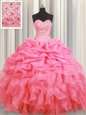 Halter Top Rose Pink Sleeveless Beading and Ruffles and Pick Ups Floor Length 15 Quinceanera Dress