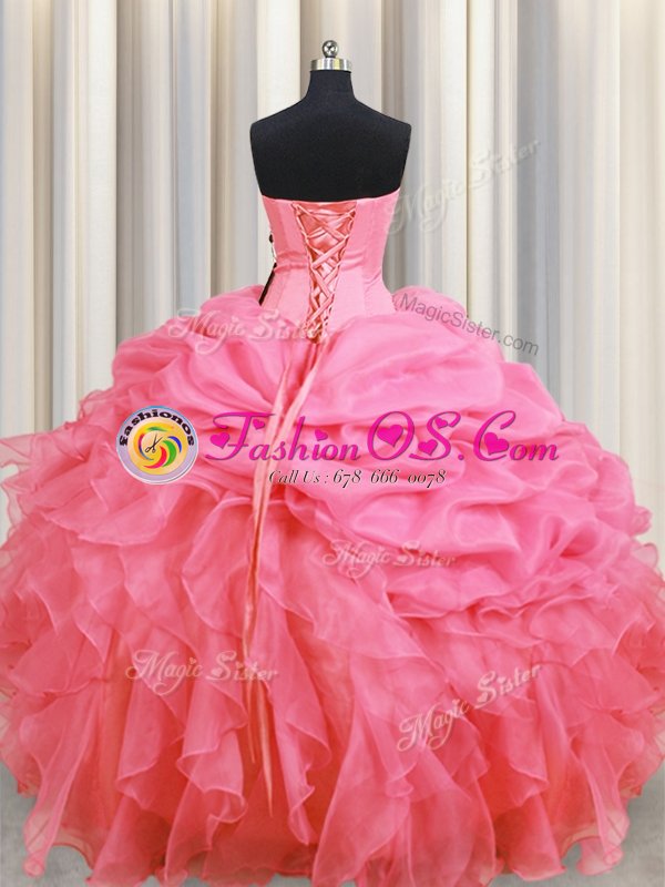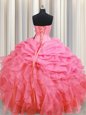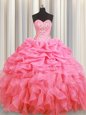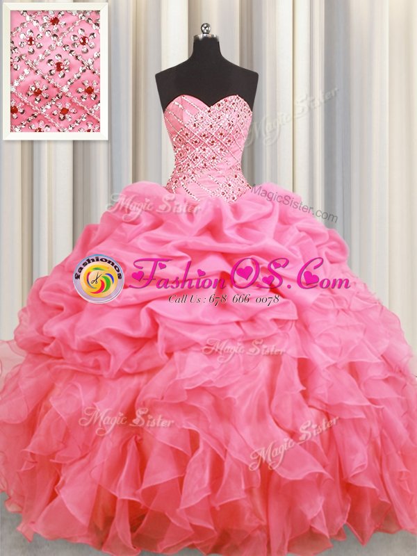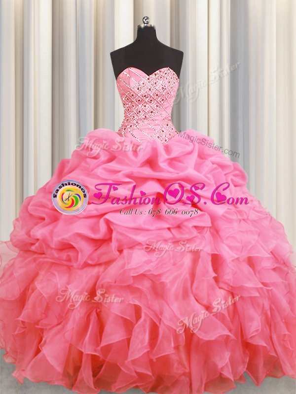 Home >  Quinceanera Dresses >  Fast Delivery Quinceanera Dresses > Halter Top Rose Pink Sleeveless Beading and Ruffles and Pick Ups Floor Length 15 Quinceanera Dress
