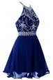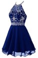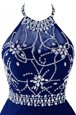 Halter Top Royal Blue Sleeveless Organza Zipper Prom Dresses for Prom and Party