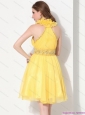 Halter Top Ruffled Christmas Party Dresses with Beading