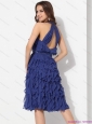 Home >  Prom Dresses >  Plus Size Prom Dresses > Halter Top Ruffled Knee Length Plus Size Prom Dresses with Criss Cross