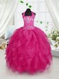 Home >  Special Occasion Dresses >  Little Girl Pageant Dresses > Halter Top Sleeveless Appliques and Ruffles Lace Up Kids Pageant Dress