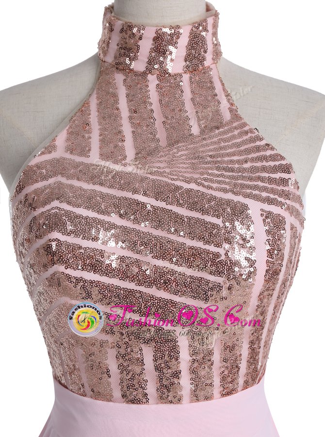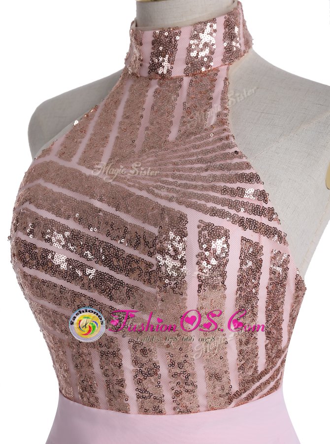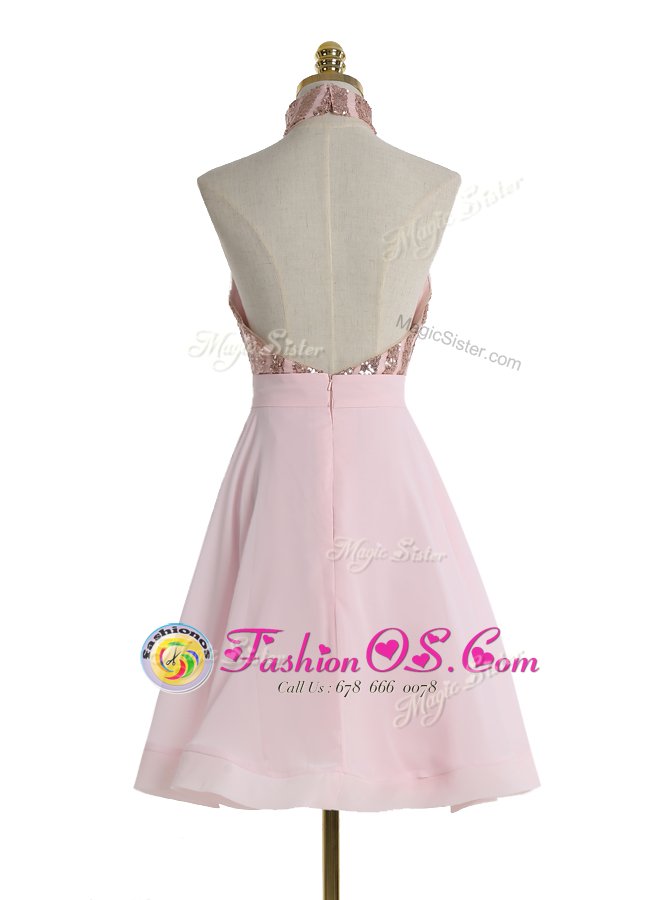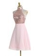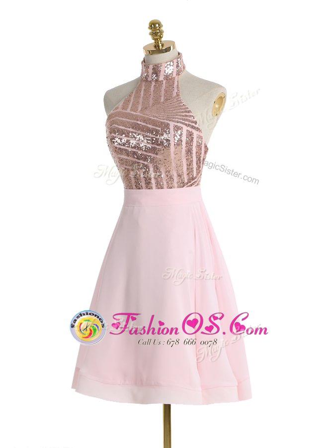 Halter Top Sleeveless Backless Knee Length Sequins Cocktail Dress