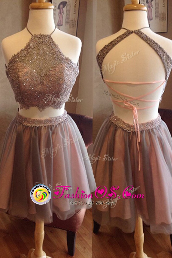 Home >  Special Occasion Dresses >  Cocktail Dresses > Halter Top Sleeveless Beading Criss Cross Club Wear
