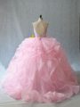 Halter Top Sleeveless Brush Train Backless 15 Quinceanera Dress Baby Pink Organza