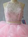 Home >  Quinceanera Dresses >  Perfect Quinceanera Dresses > Halter Top Sleeveless Brush Train Backless 15 Quinceanera Dress Baby Pink Organza