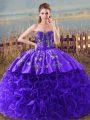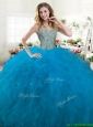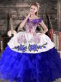 Home >  Quinceanera Dresses >  Sweet 16 Dresses > Halter Top Sleeveless Brush Train Lace Up Quinceanera Gown Blue Tulle