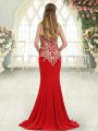 Halter Top Sleeveless Elastic Woven Satin Evening Dress Beading and Lace Sweep Train Zipper