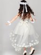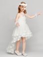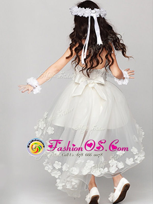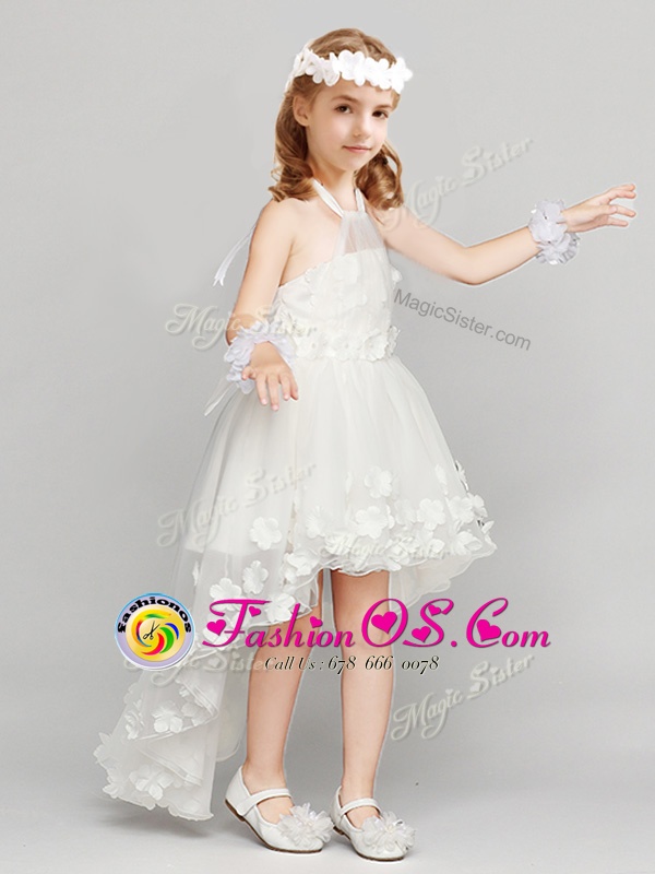 Halter Top Sleeveless Flower Girl Dresses for Less High Low Appliques and Bowknot White Organza