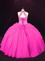 Home >  Quinceanera Dresses >  Perfect Quinceanera Dresses > Halter Top Sleeveless Lace Up Ball Gown Prom Dress Hot Pink Tulle