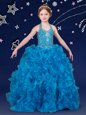 Halter Top Sleeveless Lace Up Floor Length Beading and Ruffles Flower Girl Dresses