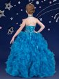 Home >  Special Occasion Dresses >  Mini Quinceanera Dresses > Halter Top Sleeveless Lace Up Floor Length Beading and Ruffles Flower Girl Dresses