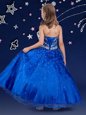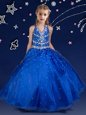Home >  Special Occasion Dresses >  Little Girl Pageant Dresses > Halter Top Sleeveless Little Girls Pageant Dress Wholesale Floor Length Beading Royal Blue Organza