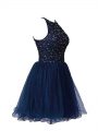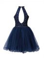 Halter Top Sleeveless Military Ball Gowns Mini Length Beading Navy Blue Tulle