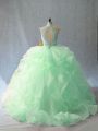 Halter Top Sleeveless Organza Sweet 16 Dresses Beading and Ruffles Brush Train Backless