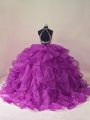 Halter Top Sleeveless Organza Sweet 16 Dresses Beading and Ruffles Brush Train Backless