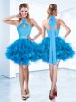 Warning: number_format() expects parameter 2 to be long, string given in /home/fashonos/domains/fashionos.com/public_html/includes/classes/currencies.php on line 52 Halter Top Sleeveless Prom Dress Mini Length Ruching and Belt Baby Blue Organza-