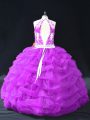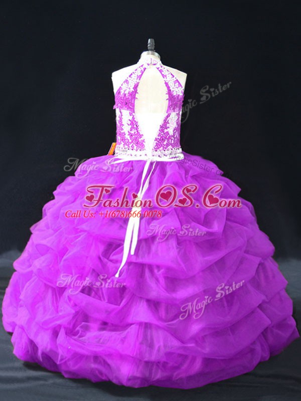 Halter Top Sleeveless Quince Ball Gowns Floor Length Beading and Pick Ups Purple Organza