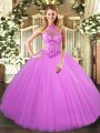 Halter Top Sleeveless Quinceanera Dress Floor Length Beading and Embroidery Lilac Tulle
