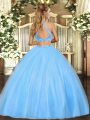 Halter Top Sleeveless Sweet 16 Quinceanera Dress Floor Length Beading Lilac Tulle